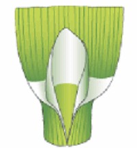 Knoppläge: Bladskiva i rullat knoppläge.