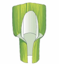 Bladslida: Hoptryckt, glatt, mer eller mindre öppen bladslida med köl.